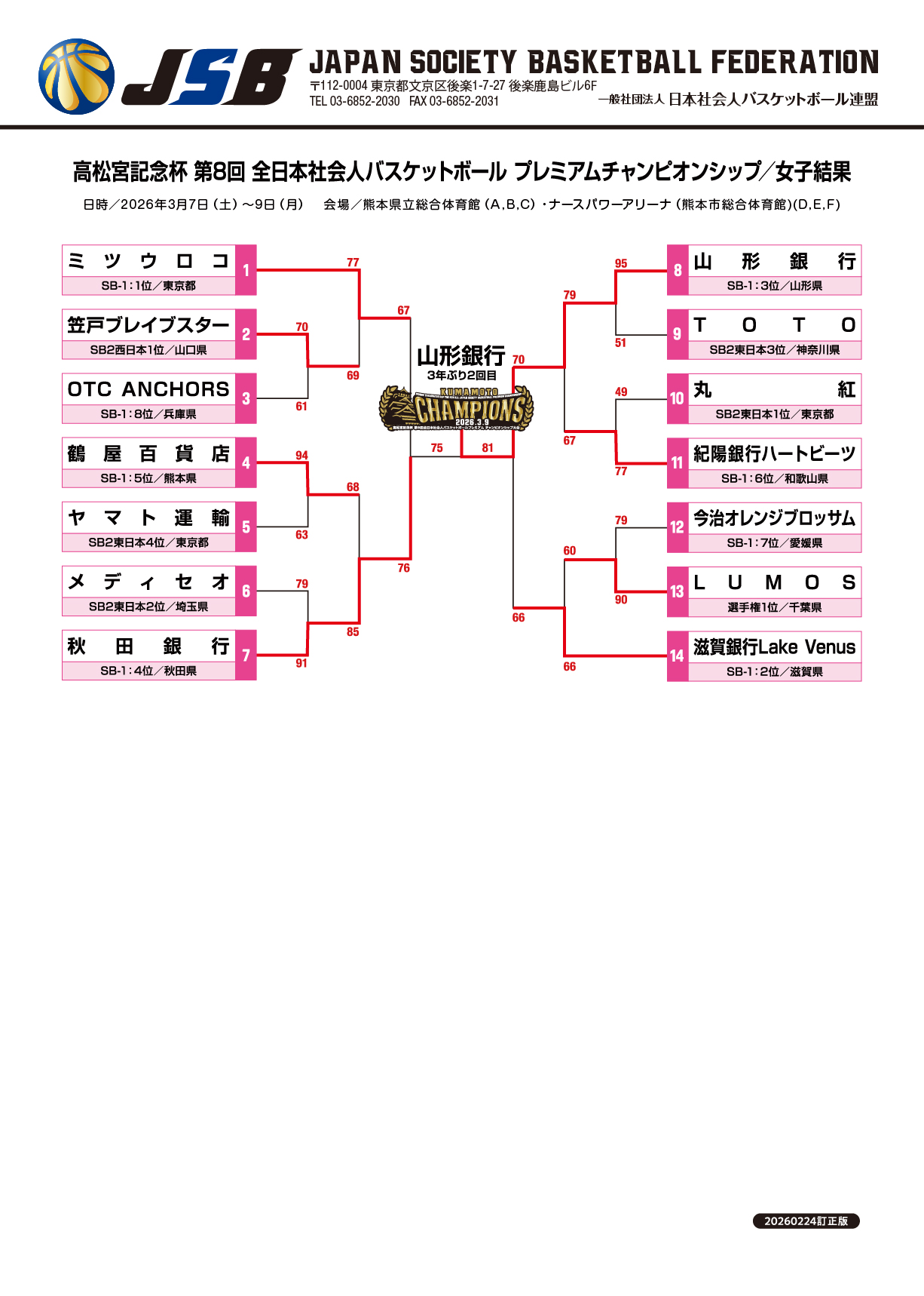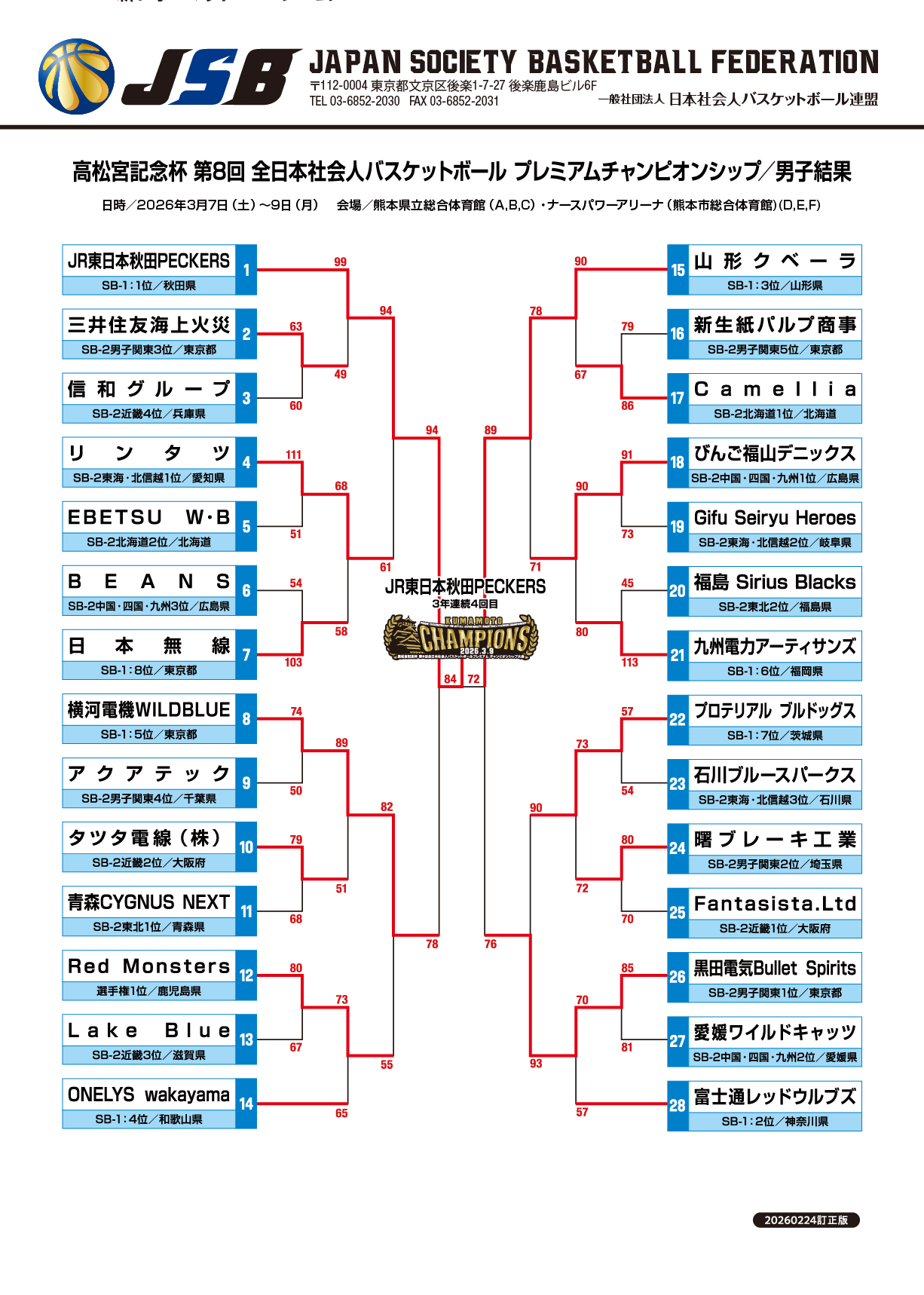 【最終結果】高松宮記念杯 第8回 全日本社会人バスケットボールプレミアムチャンピオンシップ(熊本大会)